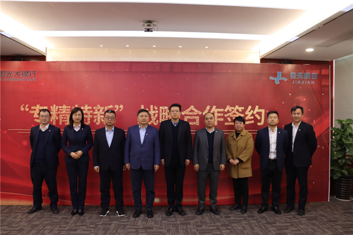 簽約會(huì)上,光大銀行付萬軍行長(zhǎng)表示,光大銀行將發(fā)揮“投商行一體化”優(yōu)勢(shì),為“專精特新”企業(yè)提供有光大財(cái)富管理特色的綜合金融服務(wù)。 佳先股份董事長(zhǎng)李兌表示,佳先股份的發(fā)展離不開金融機(jī)構(gòu)的大力支持。此次戰(zhàn)略合作簽約儀式,將能夠通過支持“專精特新”企業(yè)這一平臺(tái),促進(jìn)企業(yè)的健康發(fā)展。今后,希望能夠與光大銀行攜手共進(jìn)、互惠共贏,開啟戰(zhàn)略合作新篇章。